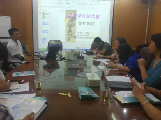 首先播放了結核病防治視頻“紅樓夢”,然後何柯醫師就我國肺結核疫情和防治背景作介紹,并就“什麼是結核病、肺結核病常見症狀、學校結核病疫情的概念和特征、學校結核病發病特點、治療結核病的五個原則、肺結核防控面臨的困難、結核病防控策略”等方面作了詳細講解。最後,謝愛雲醫生向現場老師們分發了結核病防治宣傳手冊、學校結核病防控措施等資料。