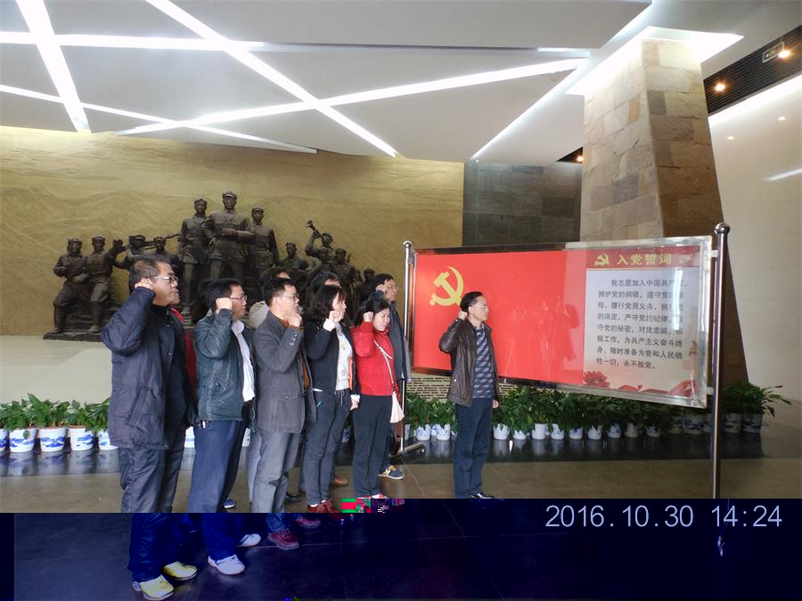 10月29日,是黨的十八屆六中全會閉幕後的第二天,太阳成集团tyc33455cc教工黨員在校黨委委員李軍林副校長的帶領下,來到革命紀念地平江進行政治學習,重溫了入黨誓詞。