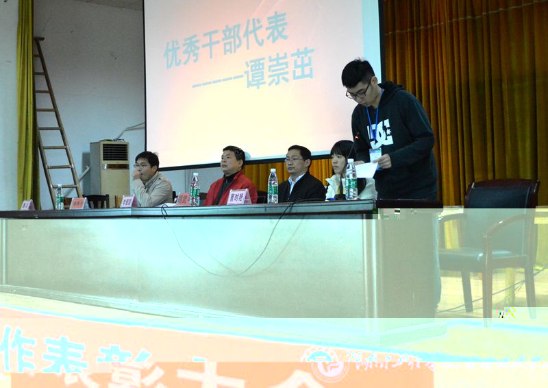 11月20日中午1:00,我院2014-2015宣傳工作表彰大會在南校區一教四樓活動中心舉行,院黨總支書記李愛國、副院長胡武平、黨總支副書記徐粵宇、團總支書記唐冰、輔導員曹時豔出席本次大會。我院第八屆新聞通訊社全體成員及獲獎人員參加大會,大會由陳葉晗主持。