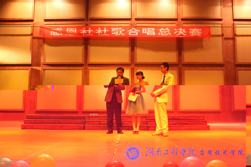 12月14日晚,我院第一屆感恩社社歌合唱總決賽在新校區體育館隆重舉行。出席的嘉賓有學生工作處處長劉濤、校團委書記黃中華、我院黨總支副書記暨感恩社創始人徐粵宇、學生工作辦公室主任劉紅石、團總支部書記章平等老師。我院2014年歌手大賽獲獎選手擔任本次比賽的評委。比賽由歐陽光、鄧佳敏主持。