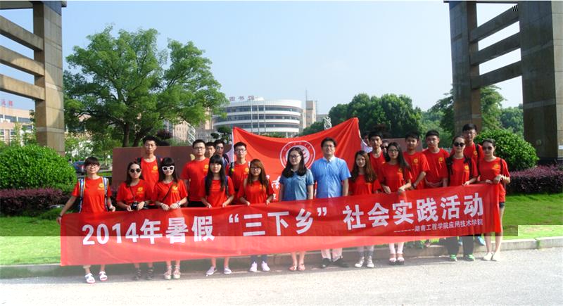 2014年7月7日上午,我院暑期“三下鄉”社會實踐活動在湘潭縣雲湖橋鎮拉開序幕。在鎮政府前坪舉行了簡短的啟動儀式,雲湖橋鎮黨委副書記、人大代表朱亮,鎮團委書記彭龍,我院黨總支副書記徐粵宇、團總支書記章平、服務團隊輔導老師王慧以及我院20名大學生志願者參加了啟動儀式,儀式由彭龍主持。