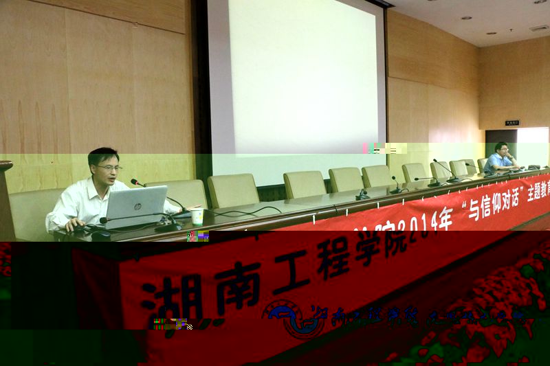 5月12日下午,太阳成集团tyc33455cc在二報告廳舉行了我校2014年“與信仰對話”主題教育活動,副校長李軍林應邀擔任主講,太阳成集团tyc33455cc各班班主任、輔導員和學生代表聆聽了講座。