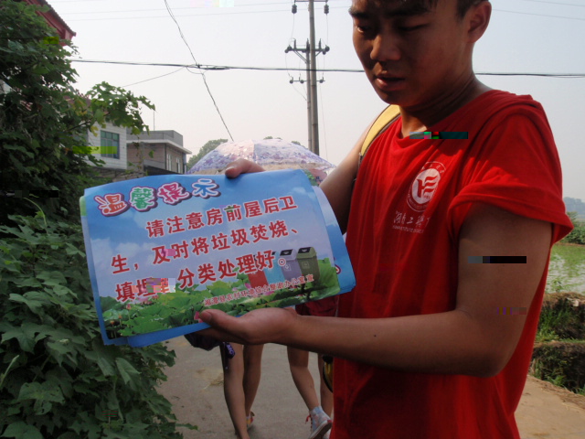 7月13日上午8:00,我院“三下鄉”服務團冒着炎炎烈日,在領隊老師陳歡的帶領下步行4公裡對雲湖橋鎮石井鋪村展開了有關環境保護的問卷調查。20名服務團成員分成兩大組行動,分别進行問卷發放、收回和标語的粘貼與宣傳資料的發送。此次調查的目的是為了掌握當地民衆對環境保護的認識、了解和關注程度,從而更有效的協助當地政府進行環境整治,改善生态環境,實現人與自然的和諧。