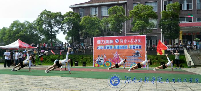 5月20日下午,我校2012年度“健力美杯”健美操、花球啦啦操、街舞大賽在主校區學海廣場舉行。活動以“我運動、我健康、我快樂”為主題,全校共12個學院、259名同學參加此次大賽,創下曆史之最。我院代表隊伴随着優美的音樂上場,她們身着具有活力的服裝,動作整齊,隊形多變。她們巧心構思擺出了一個個盛大的造型,既凸顯出體育的剛勁,又不失舞蹈的柔美。力與美的和諧統一讓細節與整體的平衡發揮得恰到好處,時而嚴整時而靈動的隊列诠釋出屬于她們的活力與激情。她們用夢想譜寫自由的篇章,用動感的音符跳出生命的旋律,用輕快的舞步創造年輕的感動。舞台上看到她們舞姿優美,讓同學們大開眼界也為之驚歎,評委老師也被她們征服了。比賽現場,更有離退處的27位老師的廣場舞表演為大家助興,演繹着老一輩的激情與活力。